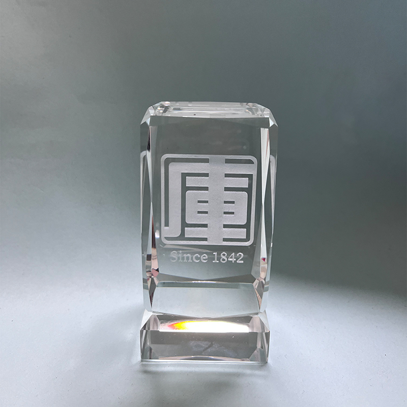 產品特色:這套為香港庫務署量身打造的鐳射水晶獎座+水杯組合,選用進口高純度無鉛水晶原材,經16道精密冷切割與手工拋光工序製成——通體澄澈如冰,透光率達93%以上,擺放時如凝結的月光,鐳射雕刻的機構標誌與頒獎信息清晰銘刻於水晶深層,久不磨損、永不褪色。獎座採用梯形穩固結構,搭配啞光黑實木底座,將水晶的通透與木質的沉穩完美融合;水杯則配備食品級硅膠密封蓋與防滑杯墊,兼具觀賞性與實用性,每一处細節都契合政府機構的嚴謹與規範。