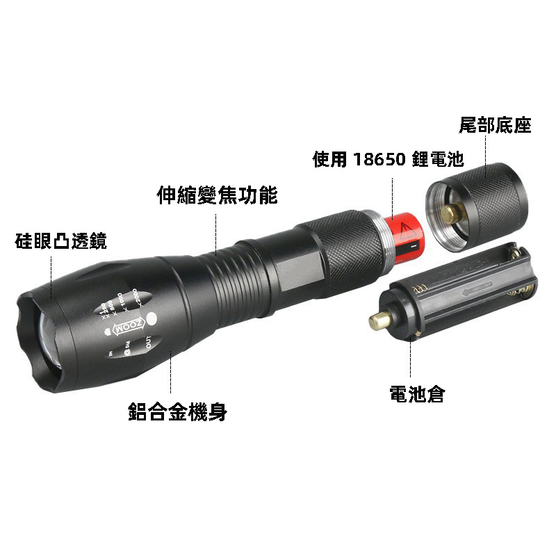 T6伸縮變焦強光USB電筒 - 专业照明的極致體驗