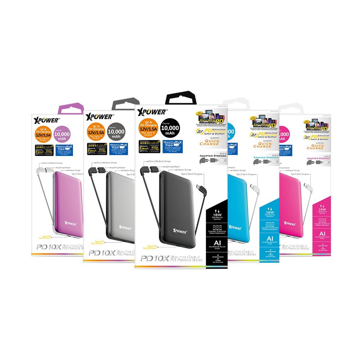 這款移動電源採用10,000mAh鋰聚合物電池,具有高效的充電和長時間的使用。高貴的鋁合金面板給它增添了時尚感。